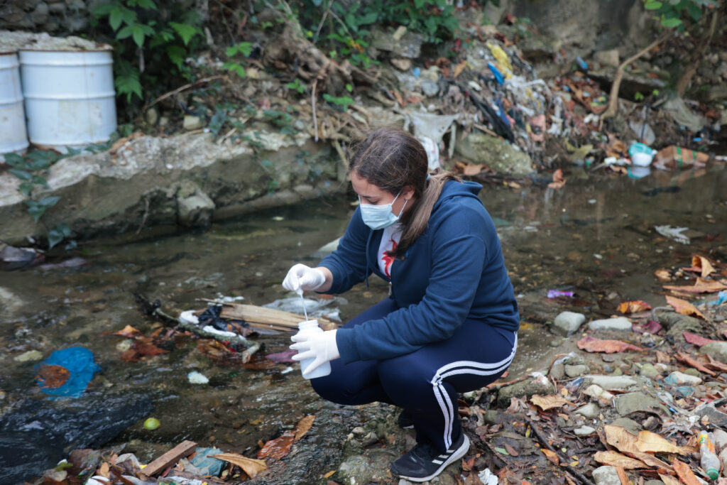 En nuestra visita al arroyo tomamos muestras del agua para luego analizarlas en el laboratorio. Las muestras de agua más contaminadas corresponden al lugar visitado más cercano al colegio, las muestras menos contaminadas fueron tomadas en el Parque Lineal Arroyo Gurabo.